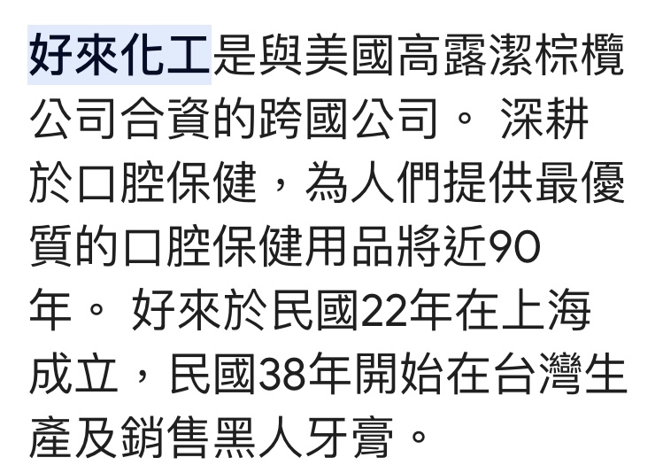 → Dcpp2015: 好來就是以前的黑人牙膏改品牌名的,改 114.39.40.197 09/08 13:27