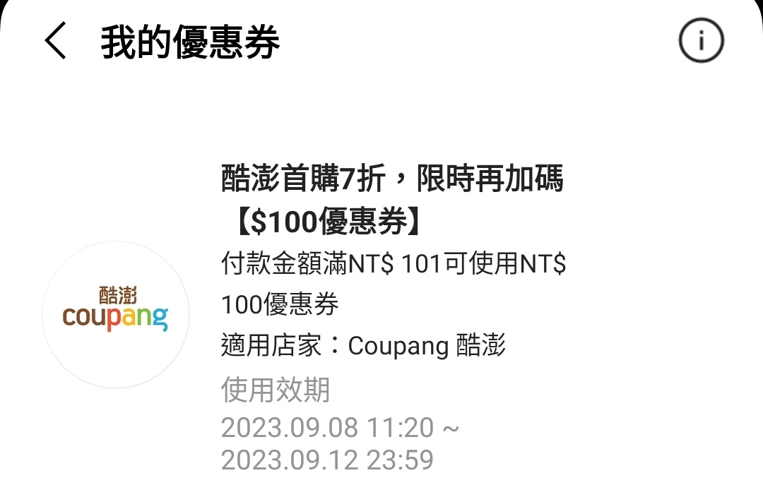 → ggyo88: 還沒註冊coupang就收到line一百元折價券了122.117.168.114 09/12 01:31