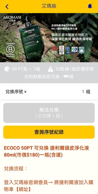 標題[情報] ECOCO點數免費兌換艾瑪絲頭皮淨化液