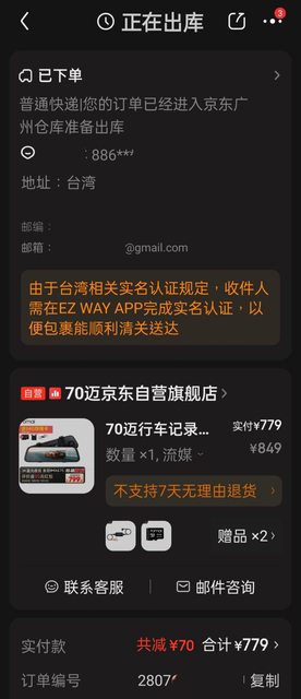台灣包郵會場:https://u.jd.com/SsCxopl 先領券: 4000折200: https://bit.ly/3RykuBl 10運費券: https://bit.ly/3rnTnyd 台灣消費者專屬贈品: ❶華碩天選 系列下單送周邊天選姬滑鼠。 ❷指定vivo、oppo、小米和realme部分機型下單送藍牙耳機 商品明細&活動辦法可參考: https://bit.ly/3Ztpvgz 70邁流媒體S500開賣,相比前代D07超級大升級,搭載索尼感光IMX675元件、前後HDR、觸控 式螢幕、1944P 3K畫質,199-20元折價券 +免運,小弟先買一台來試試囉! https://u.jd.com/SuC4EVK https://i.imgur.com/dpxzVDC.jpg