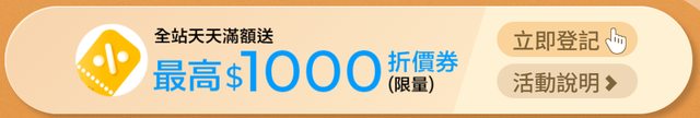 >全站指定品單筆滿$20,000登記送 滿$10,000折1,000折價券(限100名)