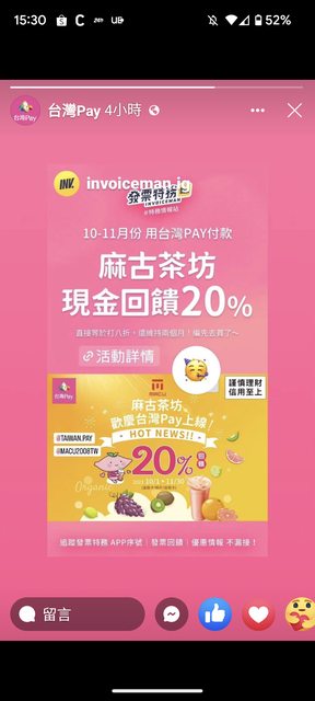 推 no321: 原來麻古可以用台灣PAY哦 114.35.239.2 10/05 03:22