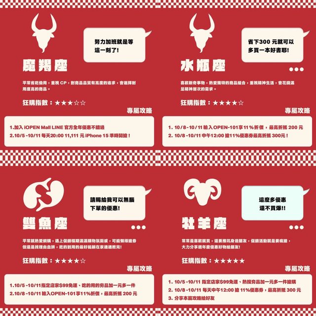 3.10/8-10/11 每天12:00搶11%優惠券 最高折抵300元