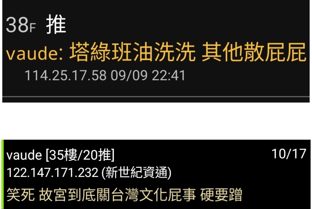 推 b54102: 連故宮都有人有意識型態 笑死 回去柵欄啦140.119.111.105 10/17 10:36