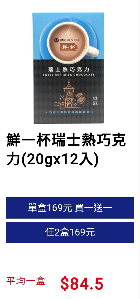 jilily: 鮮一杯熱巧克力全聯這檔比較便宜 1.200.136.214 10/24 15:16