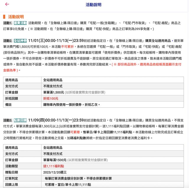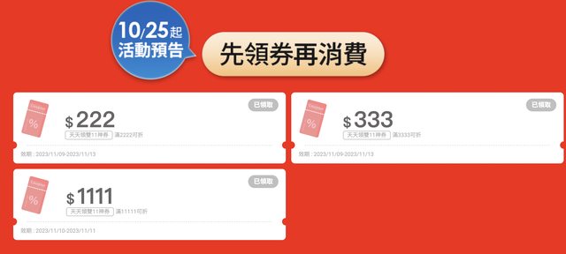雙11折價券蠻多11/1開始就可以用但有的券是要先領才能用!