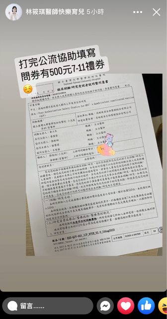 → Calvin0318: 這算藥物試驗嗎 60.248.91.70 10/27 09:36