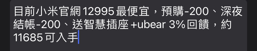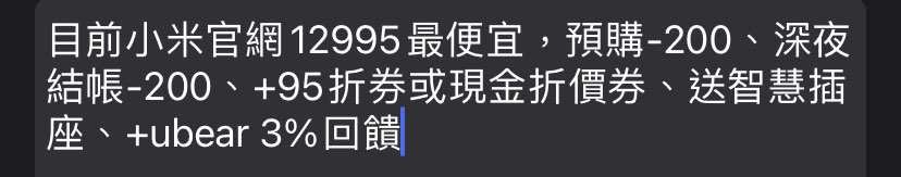→ ba328585: 對,但要仔細看小米官網結帳價是12795 114.36.107.8 10/26 22:44