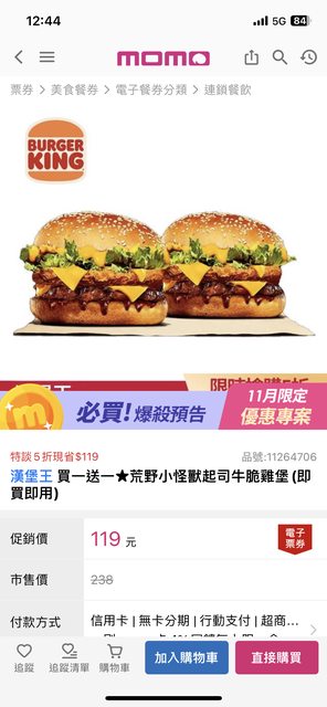 → canps: 我家這的漢堡王去兩次換小怪獸都說豬肉沒了 1.200.148.27 10/27 14:18