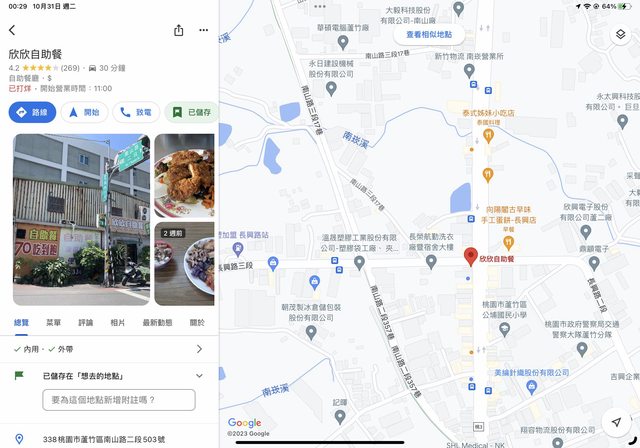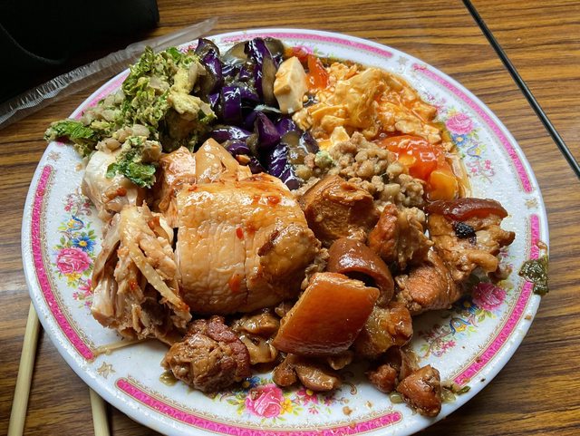 在地圖上,桃園蘆竹看似與雙北地區很遠, 但我實際從林口出發,到蘆竹店家的路程, 大約才30分鐘。實際上比想像的快了很多。 所以我之前為了想省錢,但又想要吃到飽, 幾乎每天都從台北往蘆竹跑吃完再回台北。 台北來回往返也才一小時出頭,非常划算。 這家也是位於工業區,客群也是附近上班, 工人、作業員等等,調味上也是偏重口味。 非常下飯,讓耗體力的工人快速補充能量。 這家從11:10營業,13:30收攤,只賣午餐。 所以建議大家早點來因為剛營業的時間點, 菜色最多最齊,之後就視老闆心情補餐了。 https://i.imgur.com/2ylzpTI.jpg