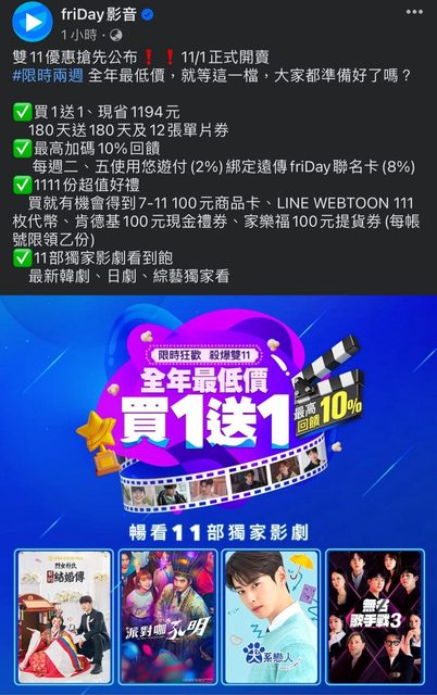 → l98: 2023/11/1-11/14購買【影劇暢看180天儲值方案 104.28.200.15 10/31 23:22