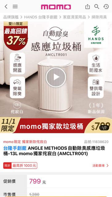 momo感應垃圾桶 能自動感應+臭氧殺菌 特價799,領券買折50 買兩顆還可以回饋311元 之前買過類似款還不錯用 分享給有需要的人 https://i.imgur.com/aOiXWE1.jpg