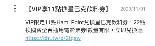 hami point 11點換星巴克飲料卷,22點換國賓影城票卷