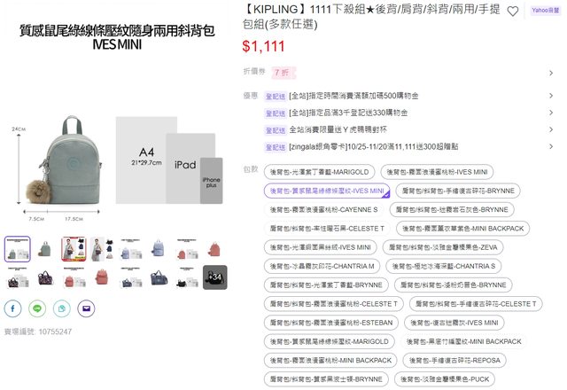 $1111的款式比官網多很多 https://reurl.cc/WvVGeO 而且我還有領到一張台新銀行指定單品7折券 可以去看自己有沒有 折下來一個包包只要$781 今天SHOPBACK導購有再多2% https://reurl.cc/GKlAzv 也有任選$1311的包款 款式更多有30幾款 https://reurl.cc/9RQ4dj -- ※ 發信站: 批踢踢實業坊(www.ptt.org.tw), 來自: 42.70.16.203 (臺灣) ※ 文章網址: https://www.ptt.org.tw/Lifeismoney/M.1698916194.A.DD7