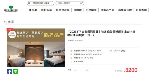 最近要出遊,一直在查有沒有不錯的便宜住宿 看到國泰飯店的線上旅展活動感覺蠻划算的~順手分享 活動時間:即日起~11/6 1.聯合住宿券:原價15000,特價3200 (適用全台和逸飯店、慕軒飯店,共六館,沒限定哪家飯店蠻方便的) https://i.imgur.com/BrRq1G1.jpg