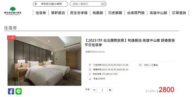 2. 和逸飯店-高雄中山館 :原價12000,特價2800 (舒適客房平日雙人住宿券,含兩客早餐) https://i.imgur.com/ieUo855.jpg