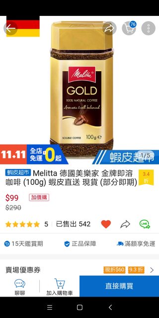 標題[情報] Melitta 美樂家 金牌咖啡 (100g)99元