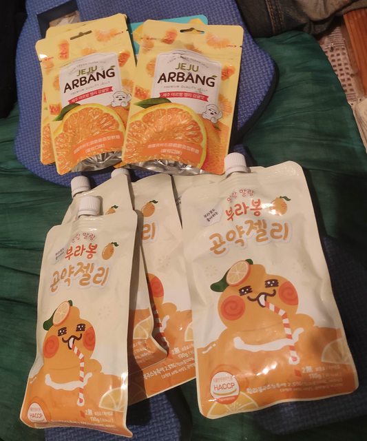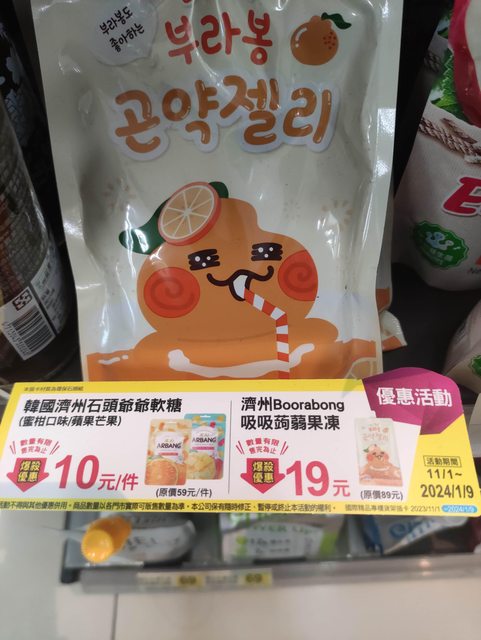 韓國濟州石頭爺爺軟糖(蜜柑/蘋果芒果) 原價59元→特價10元 韓國吸吸蒟蒻果凍 原價89元→特價19元 效期都是2024.02 https://i.imgur.com/yEEvNjL.jpg