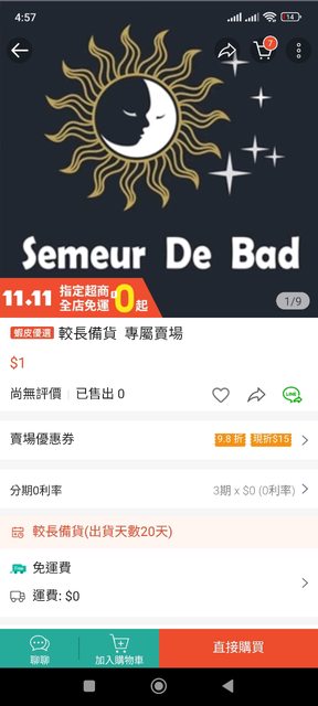 我發現超棒的東西『較長備貨 專屬賣場』,售價$1!分享給你 https://shp.ee/a8cqbrc https://i.imgur.com/c0wSH2l.jpg