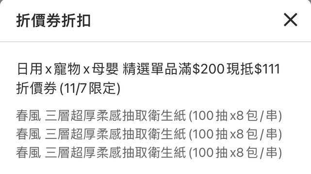 twwangwang: 沒有折111的券 淚101.137.114.194 11/07 09:00