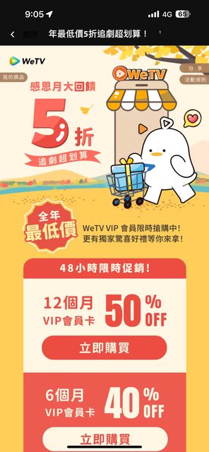 judd: wetv直接去淘寶買就好了,比這特價還便宜 27.53.99.66 11/08 16:05