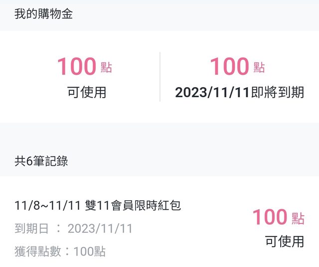 簽到時發現有購物金 應該也是分眾 可以檢查看看 使用期限11/8~11/11 https://i.imgur.com/rokSr07.jpg