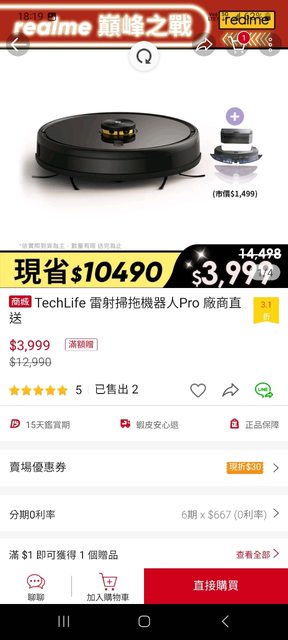 這個有點猛 如圖,帶雷射頭的掃拖機器人,3999 這價錢簡直破盤大清倉了 在海鮮的realme 官網上看到,參考看看 https://i.imgur.com/AYq647a.jpg