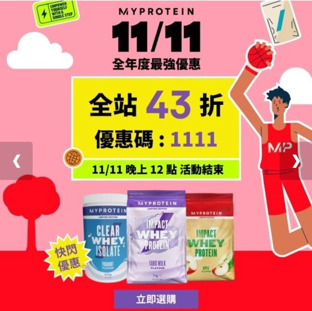 剛發現Myprotein剛好有限時43折的優惠 http://i.imgur.com/Db8gL4U.jpg