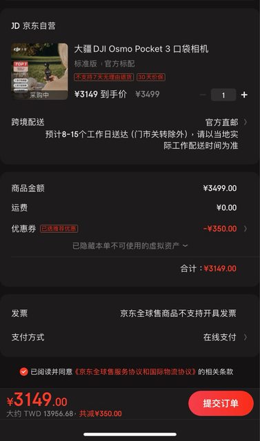 推 kintaro1219: 這樣pocket3跟去日本買退稅差不多耶 27.52.68.198 11/10 04:18