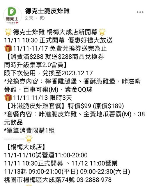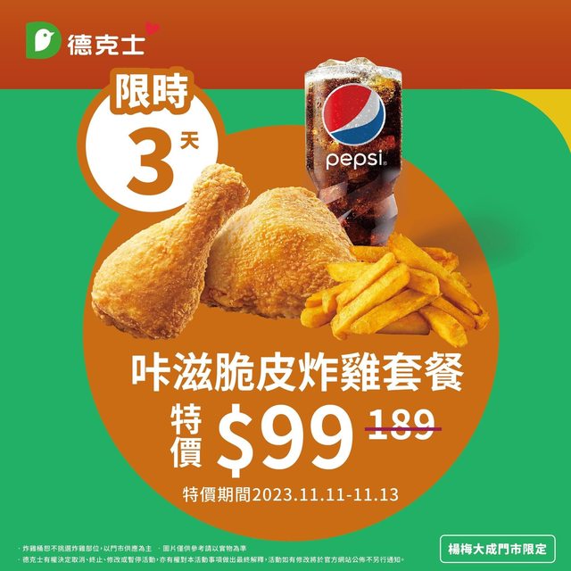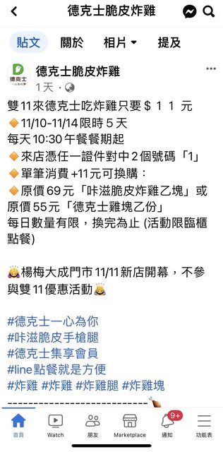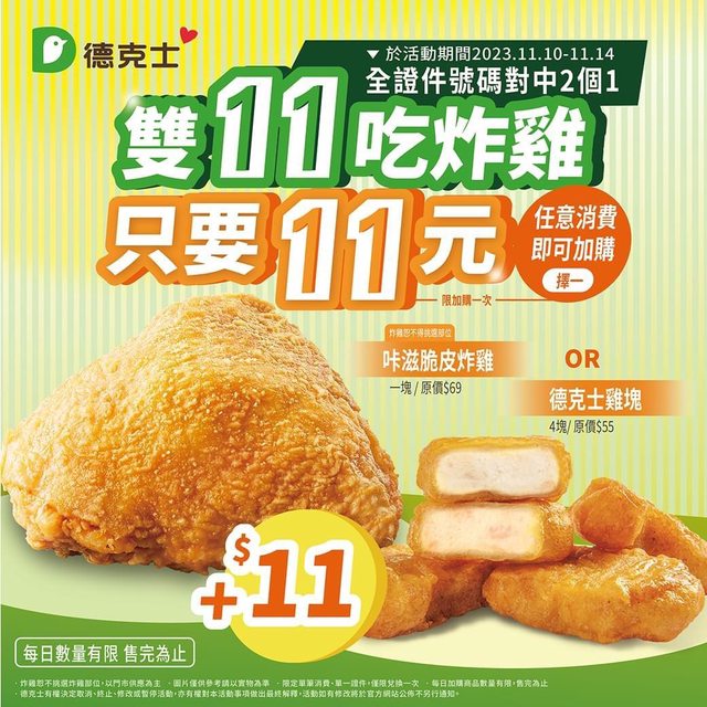 標題[情報] 雙11優惠:頂呱呱、德克士炸雞