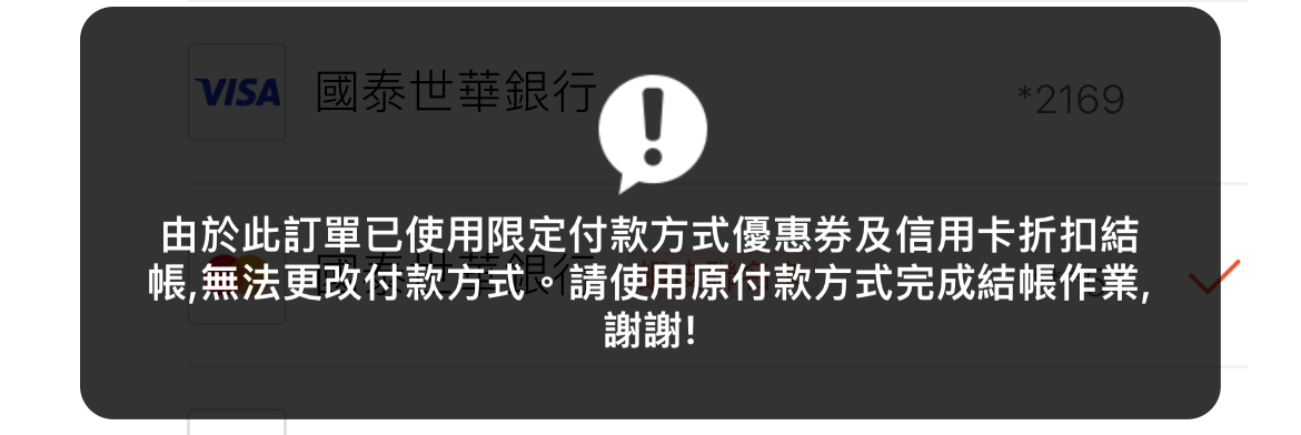 magicwater: 國泰修好的是他們那邊付款,蝦皮這邊 111.248.217.30 11/11 01:42