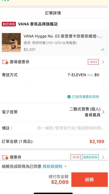 標題[情報] 蝦皮 VANA香氛 省$332