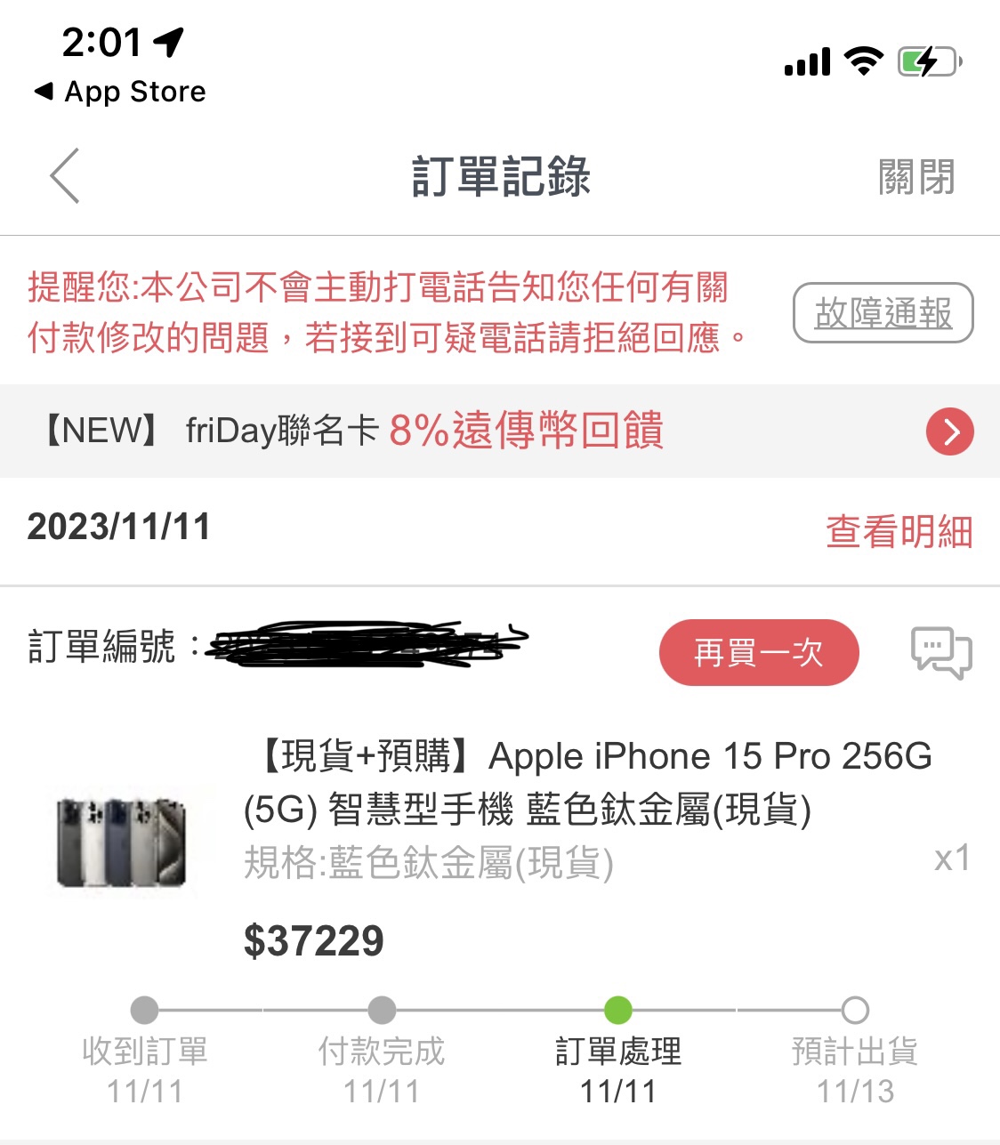 manorange610: 記得不要選分期 分期沒加碼回饋 180.217.37.7 11/11 12:29