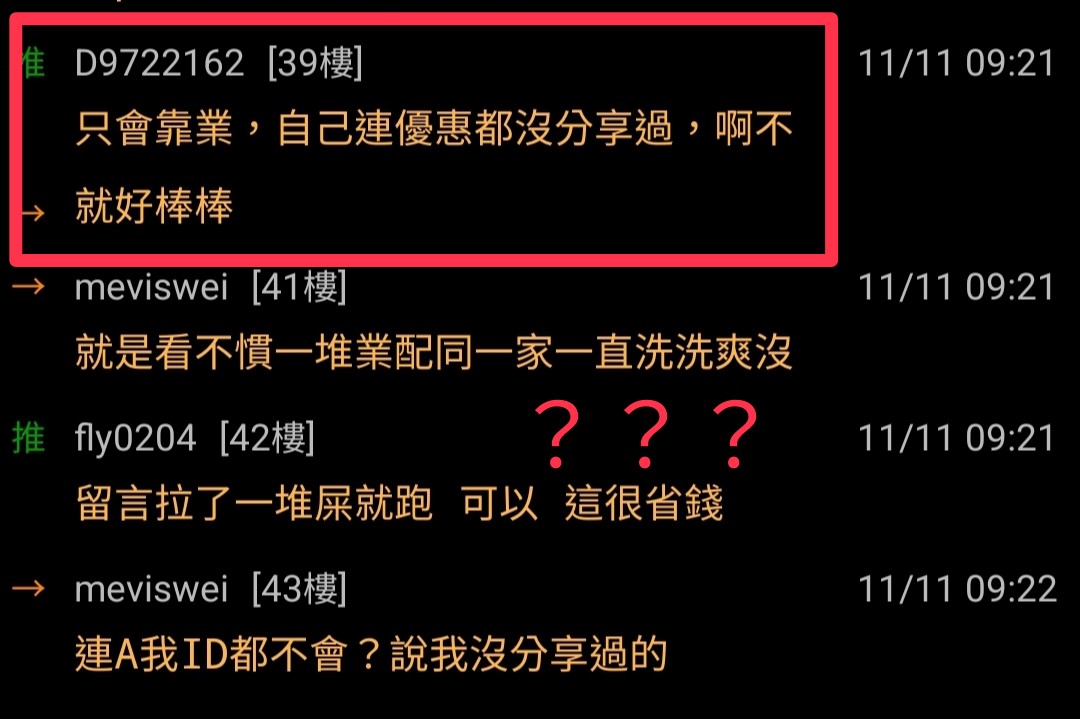 D9722162: 只會靠業,自己連優惠都沒分享過,啊不 27.242.3.211 11/11 09:21