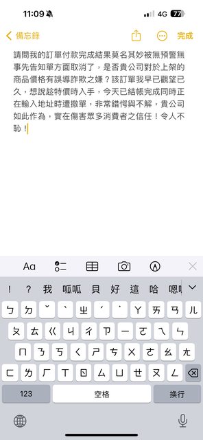 推 mattting: 訂單沒完成取消就算了,已經付款完成顯 61.61.94.156 11/11 11:12