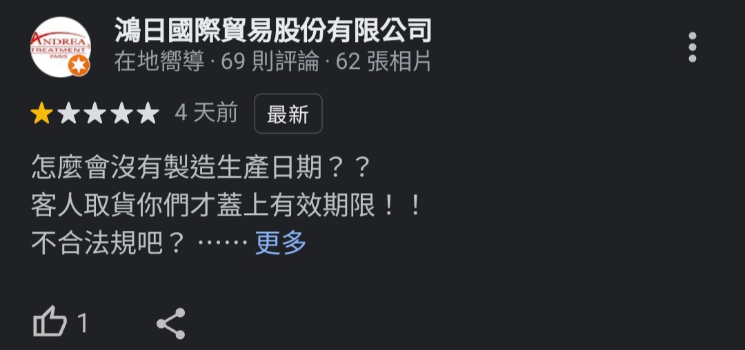 → jiamama: 老闆會回一顆星評價 卻不對這個四天前 124.218.69.134 11/11 18:12