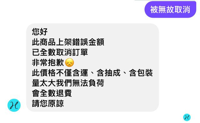 → FFFFFFFF: 平台上的單被取消要怎麼跟平台協商XDD 114.32.124.107 11/11 17:47