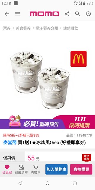 【麥當勞】買1送1★冰炫風Oreo (好禮即享券)【55元】 https://momo.dm/yfmfyY https://i.imgur.com/v0OUpWs.png