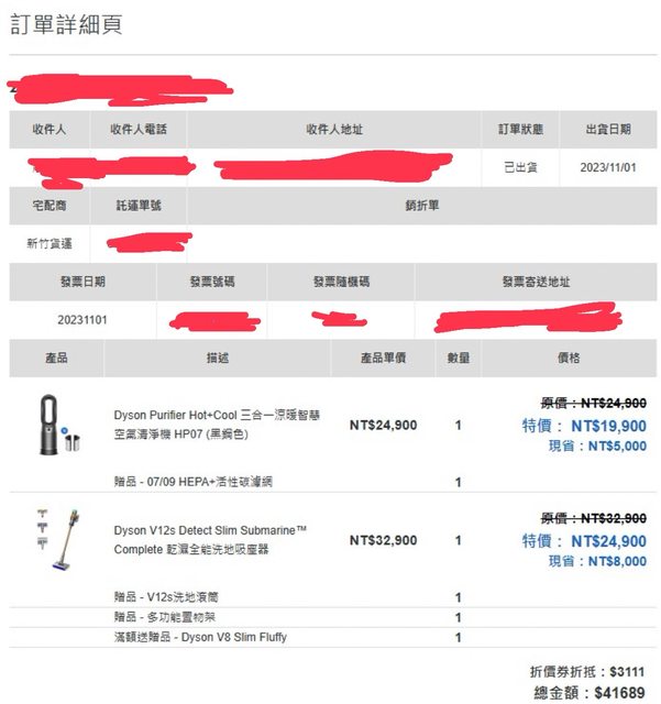 自己覺得dyson官網雙11這一波真的很強 除了多項旗艦商品特價後不輸其他通路之外 Line 導購 11% 回饋 中信Line Pay 卡+4% 沒有這張卡也可以刷其他卡吃信用卡回饋 再來滿20000可以領券折3111 滿40000送v8 slim fluffy 我自己是買了v12s complete + HP07 然後v8 拿去賣了 7500 整體算下來非常划算 如果預算有到4萬的話建議直上 我11/1買的時候Line 導購只有6% 現在有11% 用40000來算就差了兩千塊 有需要的趕快把握這波 https://i.imgur.com/dorXthW.jpg