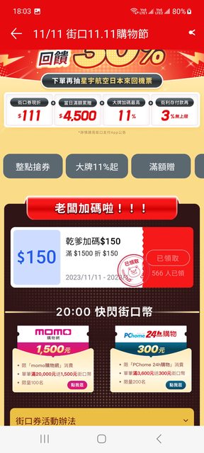 → ackes: 不是券 是街口幣 不怎麼樣的回饋額度 42.71.159.50 11/11 18:34