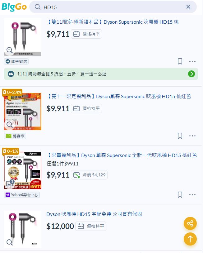 雙11睡前最後亂逛發現 樂天有Dyson HD15 Supersonic吹風機滿便宜 有幾個顏色領券折1,200 後只要$11,700滿划算 https://www.rakuten.com.tw/shop/hlh-dyson/product/qmbzo8kky/ 而且好像還有幾款新顏色結帳再折1111 這樣蠻便宜的!! 大家還有要買快去看看 -- ※ 發信站: 批踢踢實業坊(www.ptt.org.tw), 來自: 49.216.223.110 (臺灣) ※ 文章網址: https://www.ptt.org.tw/Lifeismoney/M.1699715201.A.B6D