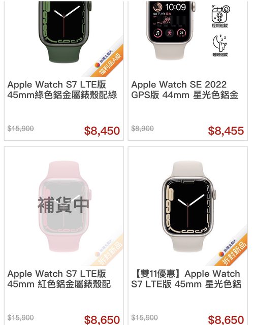 S7 LTE版 41mm $8,399 綠色鋁金屬錶殼+綠色運動錶帶 午夜色鋁金屬錶殼+午夜色運動錶帶 https://i.imgur.com/GnLu6BE.png