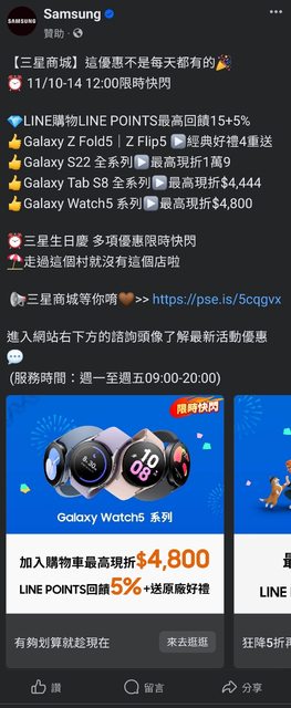 推 sdfg014025xx: 看line購物三星商城只有15%欸 這樣 61.65.128.211 11/13 11:45