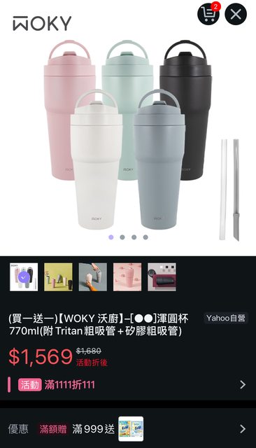 (買一送一)【WOKY 沃廚】–[●●]渾圓杯770ml(附Tritan粗吸管+矽膠粗吸管) 活動折後$1,569 算起來平均一個$785 https://reurl.cc/9RAWZV WOKY品牌慶 歡慶雙11 滿1111現折111 https://reurl.cc/Zyd2QM 二代渾圓杯的杯蓋有改良比較不會漏水 剛看還有3色 ---- Sent from BePTT on my iPhone XR -- ※ 發信站: 批踢踢實業坊(www.ptt.org.tw), 來自: 180.218.126.131 (臺灣) ※ 文章網址: https://www.ptt.org.tw/Lifeismoney/M.1699954891.A.8E6