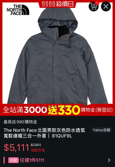 據說今天會忽然變冬天 分享我找到價差超大的TNF北臉防水三合一外套 https://i.imgur.com/X44ileH.jpg