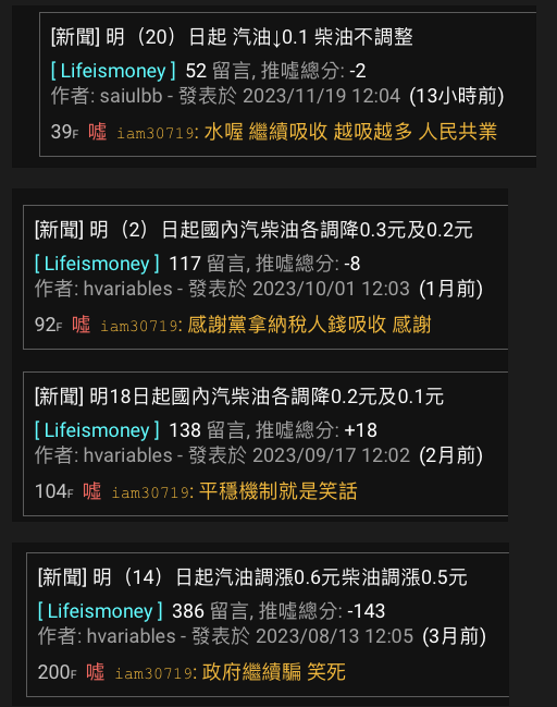 keigo800004: 每週降0.1元,直到選舉完。 61.224.223.128 11/19 12:48