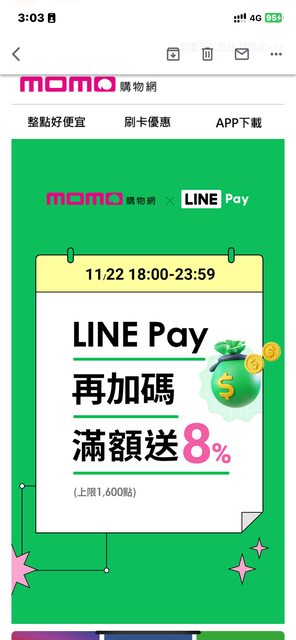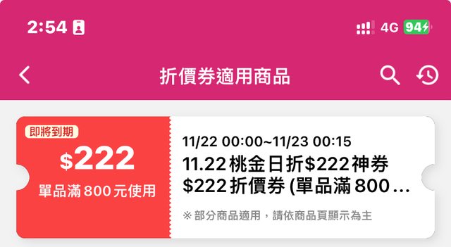 → ackes: m家折價券不好說能不能用 等當天實際了 42.71.32.29 11/21 15:16