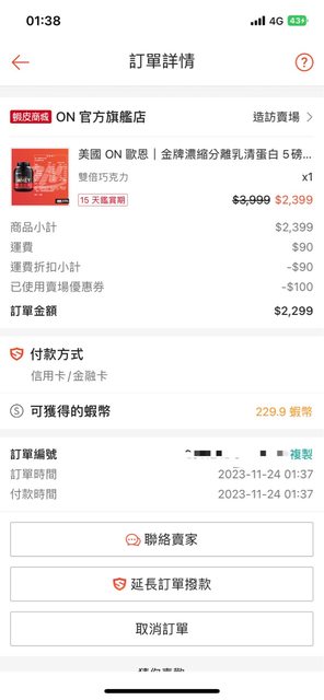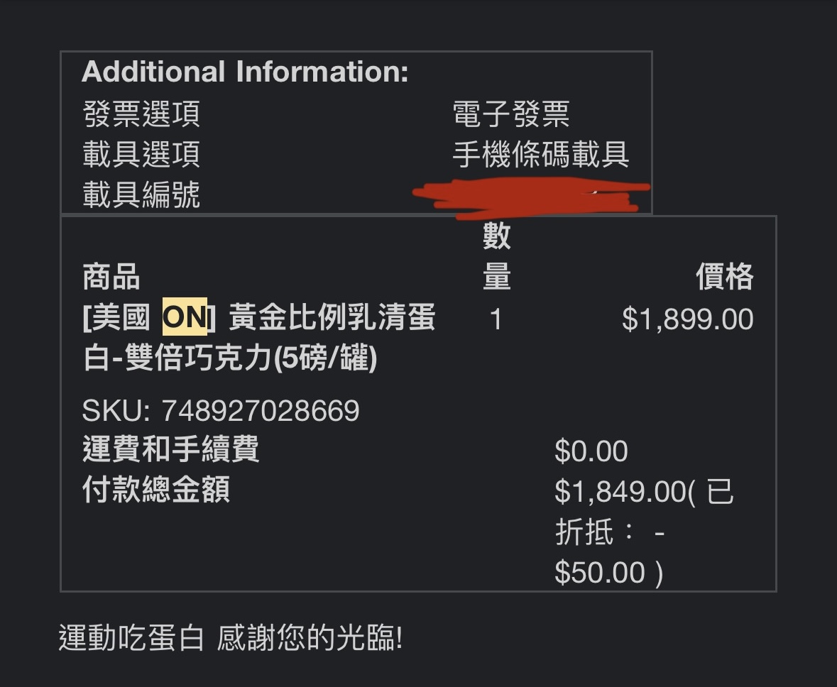 已經很久沒買ON了(好貴喝不起) 今天蝦皮活動,算一算有比之前2549便宜,下了一罐金牌5磅雙倍巧克力 可以用兩張券 我用現折100+蝦幣10%=2299+回饋230蝦幣 也有其他現折券可以疊用,但用蝦幣回饋算起來一罐2069 https://i.imgur.com/zYZAW8e.jpg