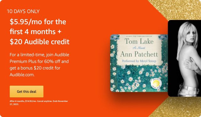 → lyremoon: 以註冊英版Audible UK,目前三個月每月 36.239.28.28 11/27 00:05