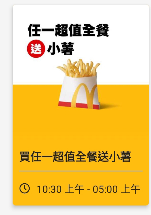 噓 alex54387: 沒吃麥當勞很久了 優惠越給越少 114.136.80.179 11/27 16:56